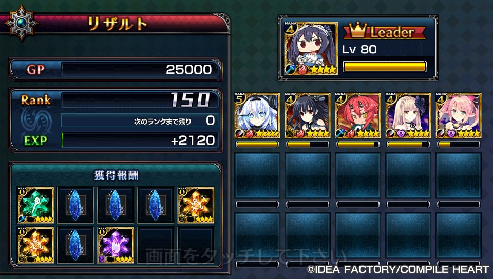 | 6/21(水) | ver.1.02 配信開始 | 時限降臨クエスト 『混沌の女神候補生』実装 | ・フレンド申請やお知らせが届いたときに「!」アイコン表示 ・バトル中、プレイヤー側のMANA保有上限が30に低下 ・「[顕現者]パープルハート」を所持したことのあるプレイヤー全員に「[ジューンブライド]ネプテューヌ」配布 ・一部キャラクターカードのバランス調整 →詳細(ページ内) | ||