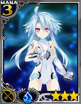 | 登場作品:『ネプテューヌシリーズ』 ブランが女神化した姿。 女神化前の寡黙さは消え、 常に荒い口調でぶっきらぼうな態度に変化する。 | |